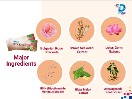 Dynace Rocenta is the latest botanical innovation with new formulation to bring up wellness, rejuvenation and keep you away from sickness. It is loaded with Polyphenols, vitamins and essential minerals derived from unique ingredient. It is the First Pytoplacenta derived from Bulgarian Rose and precursor of NAD+ which is NMN (Nicotinamide Mononucleotide) to reverse ones age with different types of selected superfood to boost ones metabolism and immunity.Dynace Rocenta is used for cell Regeneration which is the natural process of replacing, renewing, restoring and rejuvenating damaged cells, tissues, organs and the entire body parts. This treatment builds new tissues, reduce inflammation and helps prevent scar tissue from forming. This component in the product empowers the body to heal itself.